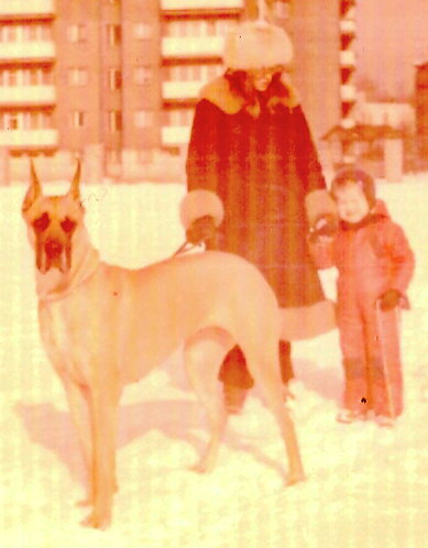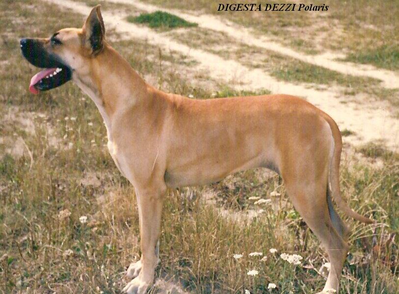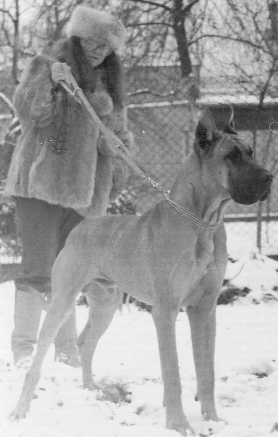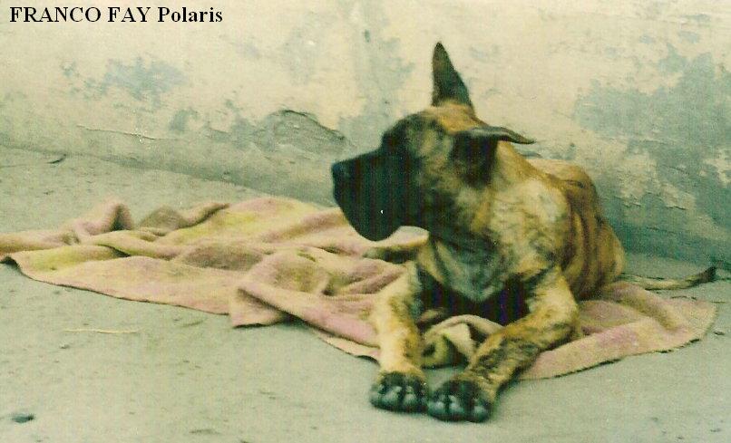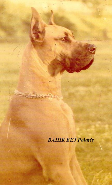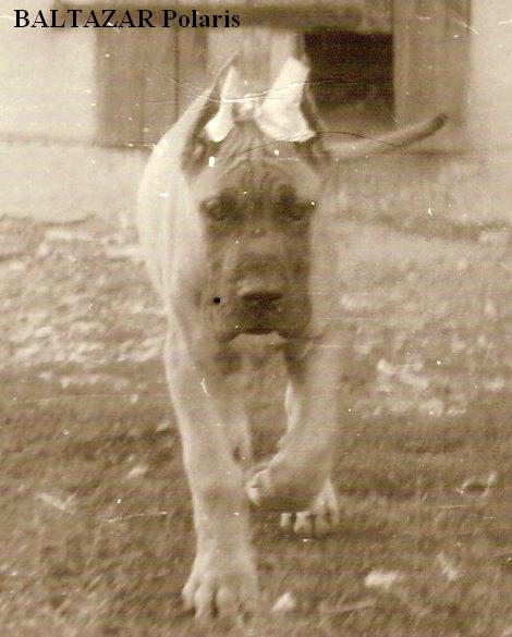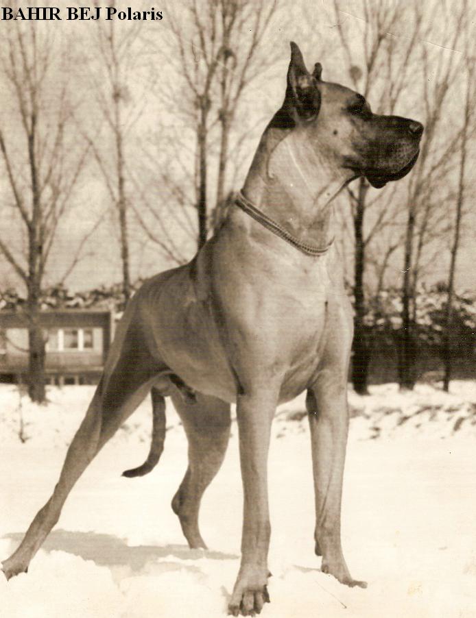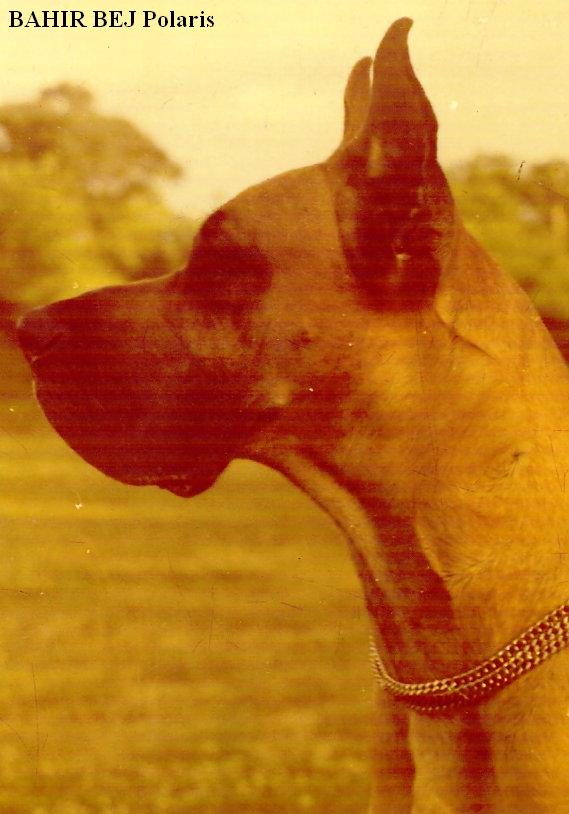 W 1980r. nabyłam swoją pierwszą sukę doga niemieckiego – GIAURĘ Rubin – Tor (CH.DE. ECKART v.d. Brentjes x SYLWIVA SALOME Pacyfik). Była to ładna, poprawna suczka o wspaniałym charakterze. Wystawianie jej dawało wiele satysfakcji, szczególnie tak młodemu i początkującemu wystawcy jak ja. W 1982r. zarejestrowałam swoją hodowlę i nastąpił pierwszy wyjazd do krycia. Niestety żółty pies, importowany z Niemiec BONY v.Goldborn nie spełnił pokładanych w nim oczekiwań i nie pokrył Giaury. Jesienią 1982r. pojechaliśmy do pręgowanego DEVIL v.d. Erle i tu też spotkała nas przykra niespodzianka, bo pies z przyczyn zdrowotnych nie miał siły pokryć suki. Nauczona poprzednimi doświadczeniami, skorzystałam z wybranego psa „rezerwowego” – MAGNAT Jaspis, jednak okazało się, że Giaura nie zaszła w ciążę. Po pół roku oczekiwań doczekałam się pierwszego miotu po JUMBO JET Pacyfik (FULL Santana x COMA PAT Santana). W marcu 1983r. w hodowli Polaris urodził się pierwszy miot – 5 szczeniąt, jednak jak to w życiu bywa, pech nas nie odstępował i tak długo oczekiwane szczenięta zachorowały na nosówkę, której epidemia panowała w zamieszkanej przeze mnie wsi i w wieku 5 – 7 tygodni, mimo wielu starań lekarzy, trzeba było uśpić szczenięta.