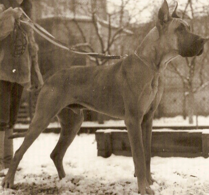 W sierpniu 1984 nabyłam żółtego psa z czołowej, czechosłowackiej hodowli Odeon CS. MARCO Odeon, który miał w swym rodowodzie CH. i Zw.Niemiec GOLDENBOY v. Old Bavaria, Inter CH. Zw.Europy QUANTO v. Schloss Lauphein, Zw.Europy JANOS des Terres de la Rairie oraz Zw.Świata PERLANE des Terres de la Rairie, wyrósł na idealnie zbudowanego psa, o samczej, proporcjonalnej, ale mało eleganckiej głowie. Uzyskał tytuł Championa, a na swym koncie wystawowym miał Młodzieżowe Zwycięstwo Klubu Doga ’85, Zwycięstwo Kraju, Zwycięstwa Wystaw i Rasy. Niestety jako reproduktor nie miał „dużego wzięcia” wśród właścicieli suk, głównie przez jego charakter, gdyż MARCO był psem bardzo agresywnym, co wzbudzało strach i niechęć. Zostawił po sobie 9 miotów, którym przekazał swoją idealną budowę i kość oraz mało elegancką głowę.