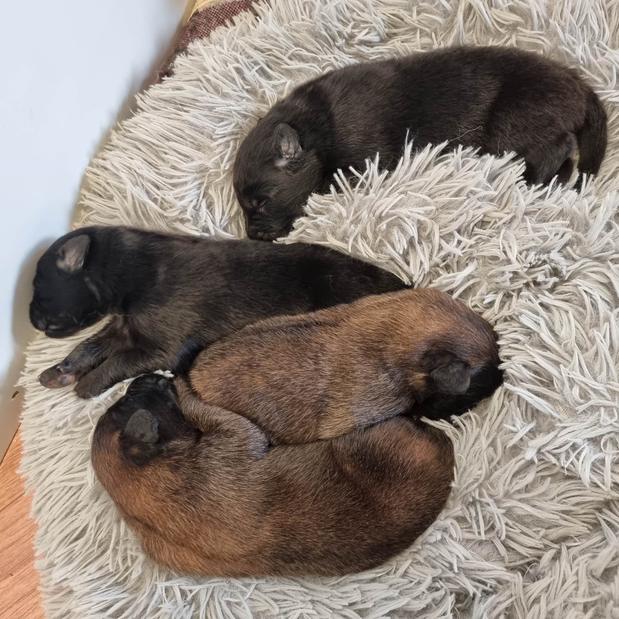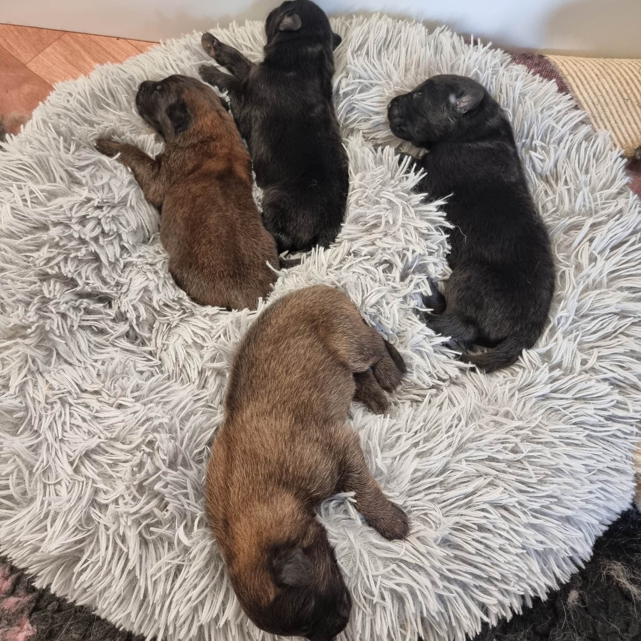 1 piesek groenendael, 1 suczka groenendael, 1 piesek tervueren i 1 suczka tervueren